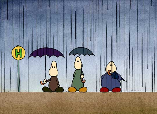 The characters of Paraplü will star in other films I've already planned. Next in production should be Schopeng, scheduled for the 200th birthday of Frédéric Chopin in 2010. It will follow the same premise: a simple funny story told without words, just animation, sounds and music. The character design is simple enough to be executed in whatever combination of drawings and software I choose, and the content suited for TV as well as for mobile devices and internet.
