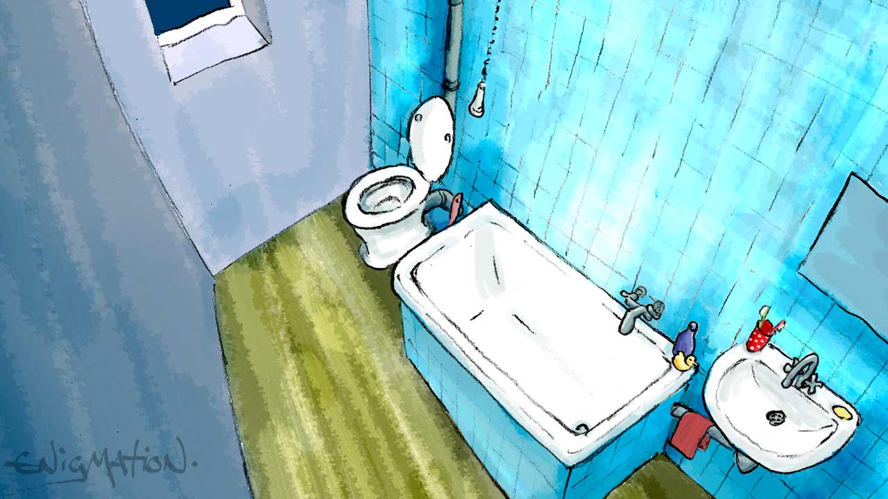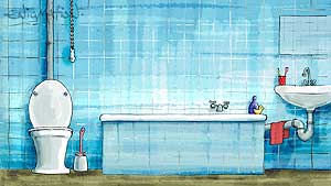Do you know this feeling, especially in the morning, when you're not really awake, that there are much more things going on than you could process right now? I always liked the idea that there were strange little creatures living behind the bathroom tiles who always come out when I'm not ready to notice. Should animate nicely.