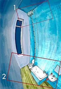 I really like the tricks background artists perform to create a certain perspective illusion in 2D. Pencil on A4 paper, coloured in PS.